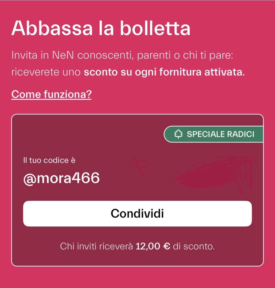 Inizia da questo link https://nen.it/attiva-nen?promoCode=@mora466
